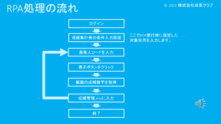 RPAで成績管理表の作成を自動化します【概要】: 保険代理店システムから成績照会し、代理店独自の成績管理表にデータを自動で入力します。【開発期間】:約1か月【開発料金の目安】:25万円~30万円(仕様によります)【ユーザーの負担】:代理店で使用している成績管理エクセルなどの資料提供【処理フロー】:【...